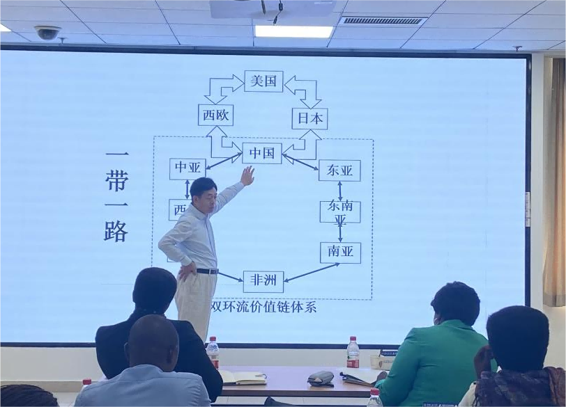 中国外交与周边关系方面,王义桅老师从历史、现实和未来三个维度为学员详细介绍了“一带一路” 构建人类命运共同体的逻辑,并从命运自主、命运与共、命运共同三方面对中非命运共同体进行了分析;徐正源老师生动介绍了中国经济发展的成就和新时代中国外交的战略调整。