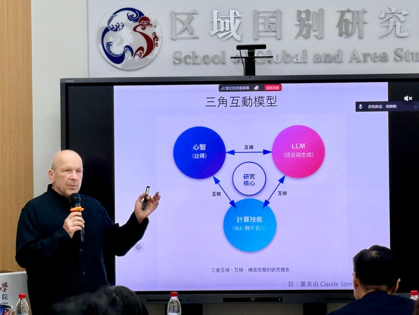 徐正源主持 韩冬临点评 黄宇兴点评 安克强教授首先从“数位人文”发展的三个阶段切入,系统梳理了人工智能技术的发展历程,进而深入探讨AI在历史学研究中的潜力与当前面临的挑战。他重点阐述了AI作为研究辅助工具所具备的五大核心功能:文献发掘与空白填补、信息抽取与分类、写作辅助与初稿生成、数据可视化(如网状图与时间轴),以及跨语言翻译与语境还原。 安克强进行讲座 部分与会师生合影 文字:熊兆基 排版:马赫骏 姚佳雨 网页编辑:朱维肖 审核:宋婷婷
