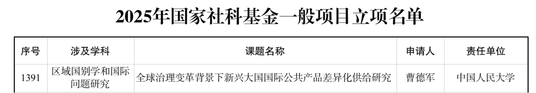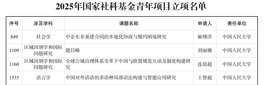 喜报!人民大学这些区域国别学课题,获得2025年国家社会科学基金项目立项