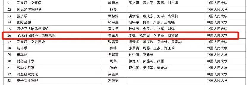 近日,教育部公示第三批国家级一流本科课程认定结果。中国人民大学国际关系学院《全球政治经济与国家风险》(现课名《全球政治经济概论》)课程成功入选,该课的特点是以大量数据图表而非文字,向法政学部的本科生,讲授全球政治经济体系的构造和不同侧面,涵盖大国力量对比,产业竞争,贸易,货币金融,能源,气候,移民,不平等,创新等不同议题。多年来一贯深受同学们的喜爱。
