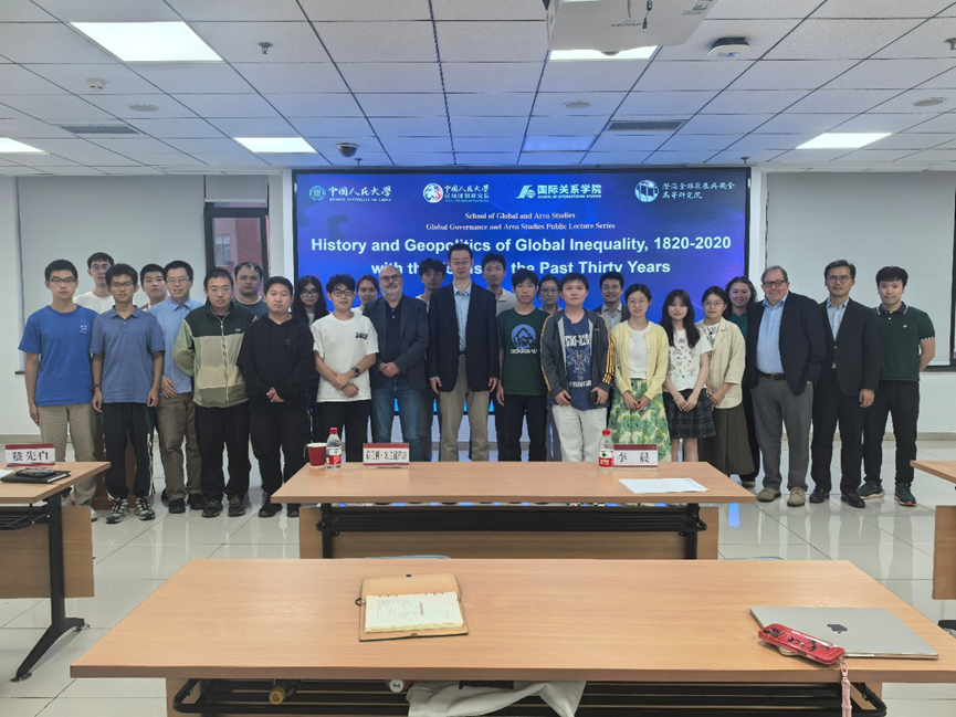 布兰科·米拉诺维奇教授 讲座吸引了校内外六十余位师生和学者参加。中国人民大学法学院访问学者迪诺·克里特西奥蒂斯(Dino Kritsiotis)以及国际关系学院黄宇兴、吴限、钟艺琛等师生共同聆听了报告。 米兰诺维奇教授的讲座系统梳理了1820年至2020年全球收入分配的演变历程,指出全球不平等可大致分为三个阶段:1820-1980年为不平等上升期,工业化国家与非工业化国家之间差距迅速扩大;1980-2008年为全球化趋同期,亚洲经济体崛起带动全球贫困显著下降;2008年金融危机以来进入不平等重组期,西方中低收入群体的全球收入地位普遍下降。 他指出,过去三十年是“自工业革命以来个人收入地位最大规模的再洗牌”。亚洲尤其是中国中产阶层迅速崛起,而发达国家中下层群体的全球相对位置明显下移。数据显示,2018年美国居民的中位收入约为中国城市居民的3.2倍;按购买力平价计算,发达国家与“外围国家”中位收入差距仍高达8倍以上。 在谈及当前形势时,米拉诺维奇认为,新冠疫情、美中贸易摩擦、俄乌冲突及加沙战争等“四重冲击”,构成了自第二次世界大战以来全球减贫与缩小不平等进程的最大挫折。他指出,随着中国经济步入高收入阶段,其增长对全球不平等的“收敛效应”正在减弱,未来非洲的增长潜力将成为决定全球不平等走向的关键因素。 讲座现场 本次讲座为师生深入理解全球收入格局的历史演变与地缘政治影响提供了新的视角,也进一步促进了中国人民大学在全球不平等与发展问题研究领域的国际学术交流。活动现场互动热烈,气氛活跃。 部分与会师生合影
