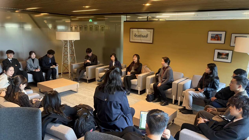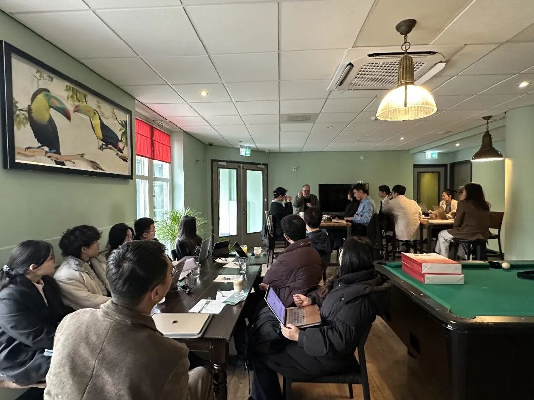 下午,调研团赴中国工商银行阿姆斯特丹分行开展交流座谈。双方围绕中资金融机构在欧洲的业务布局与发展环境、荷兰及欧洲金融市场的主要特点、当前国际政治经济形势对企业经营的影响,以及中欧经贸往来中的风险与机遇等议题进行了交流。座谈中,师生们结合区域国别研究的学术关切,就金融机构在欧洲营商环境中的适应路径、政策变化对商业活动的影响,以及中资企业在当地社会与制度环境中的实践经验进行了探讨。此次交流有助于调研团从企业实践层面理解欧洲经济社会运行逻辑,也进一步拓展了对中欧经贸关系与在欧中资机构发展状况的认识。