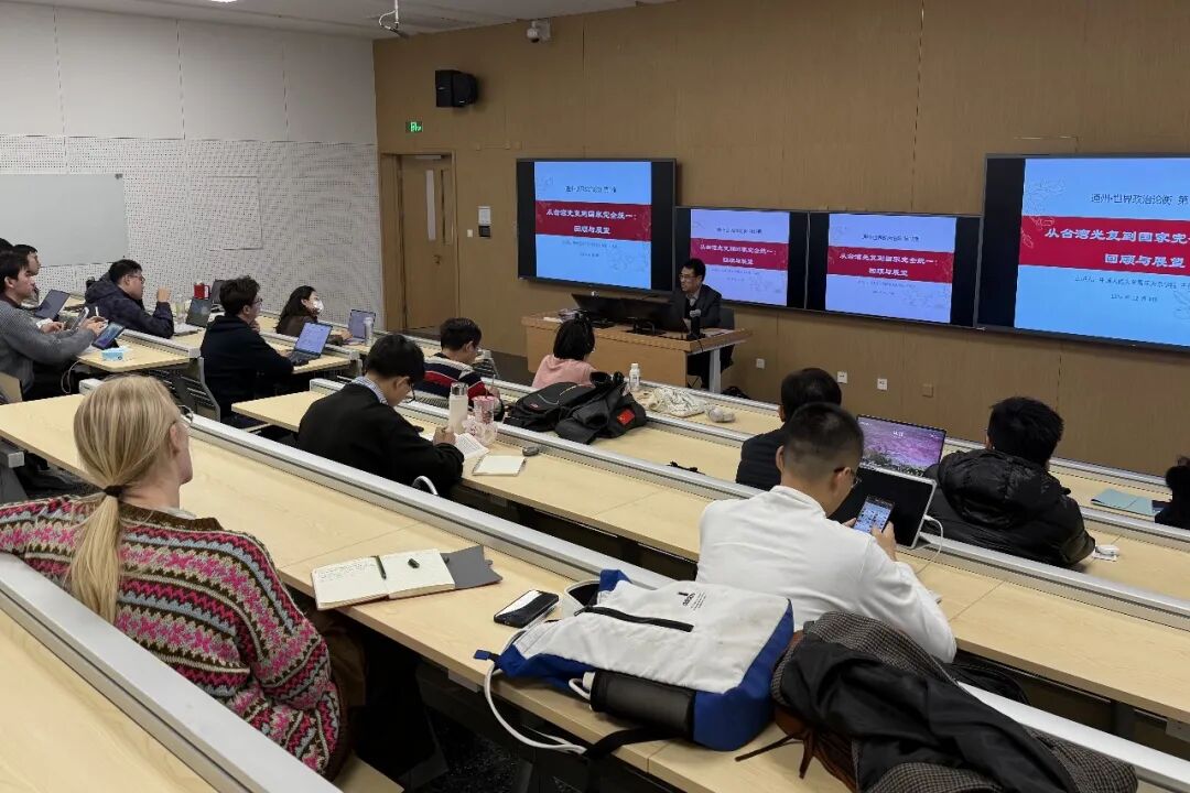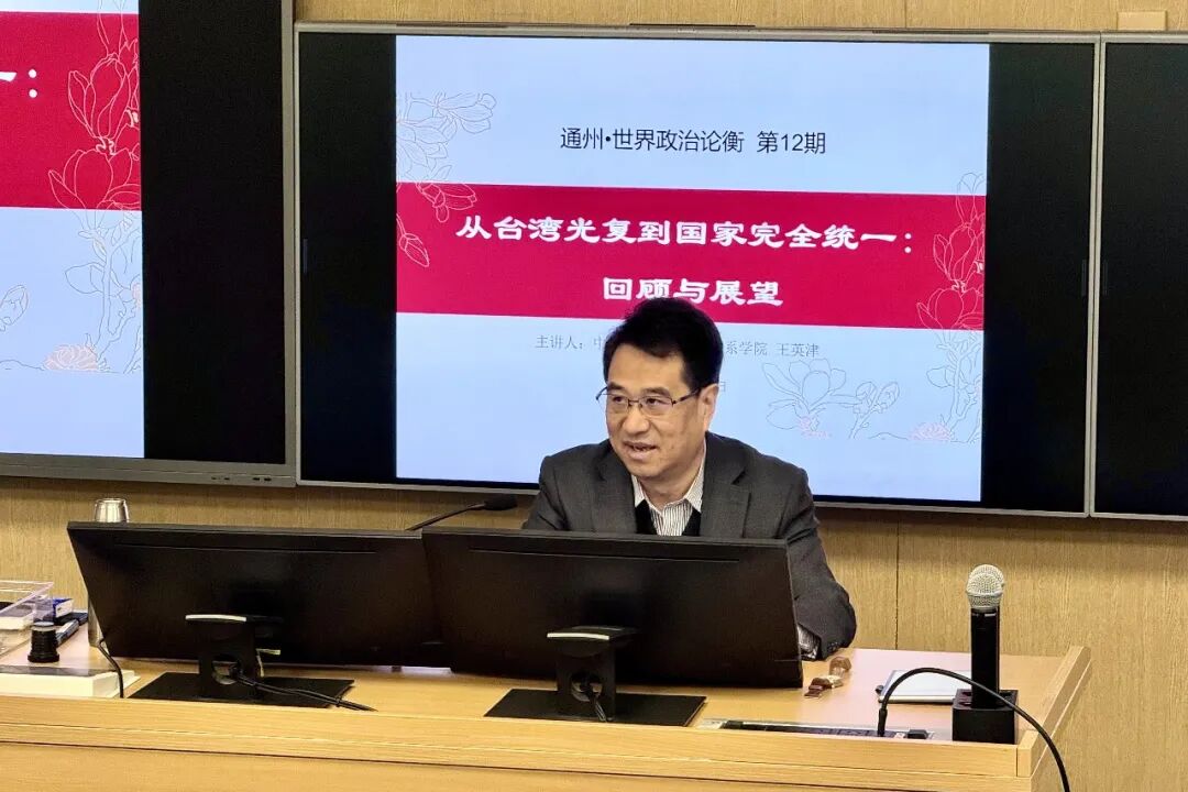 王英津教授主讲 2025年12月9日,“通州·世界政治论衡”系列讲座第十二讲在中国人民大学通州校区叶澄海楼G027教室顺利举办。中国人民大学吴玉章讲席教授、中外政治制度专业博士生导师、两岸关系研究中心主任王英津教授以《从台湾光复到国家完全统一:回顾与展望》为题,从台湾光复迄今的历史发展脉络出发,系统剖析台湾问题的演化路径、现实状态与未来走向。 主要内容 讲座开篇,王英津教授立足历史经纬,厘清了台湾光复的核心法理依据与历史逻辑。他指出,2025年恰逢中国人民抗日战争暨世界反法西斯战争胜利80周年、联合国成立80周年、台湾光复80周年的重要历史节点,大陆隆重举行相关重大纪念活动,旨在向世界重申台湾不仅是中国领土不可分割的一部分,也是战后国际秩序的重要组成部分。1943年《开罗宣言》明确战后台湾、澎湖列岛应归还中国,1945年《波茨坦公告》重申“开罗宣言之条件必将实施”,1945年日本发表《无条件投降书》,同意接受《波茨坦公告》中所列的全部条款,无条件地将包括台湾在内的所掠夺的领土全部交出;是年10月25日,台湾及澎湖列岛正式回归中国版图。这一系列国际法文件与历史事实充分证明,台湾回归中国,台湾地位已定。 王英津教授梳理了党的二十届四中全会报告中的涉台部分内容。他指出,“推进两岸关系和平发展、推进祖国统一大业”作为本次全会公报涉台部分的核心内容,内容表述中语序、布局安排的变化表明了大陆“十五五”期间对台工作重点和相关战略部署。党的二十届四中全会后大陆一系列涉台动作,如全国人大常委会决定将10月25日设立为“台湾光复纪念日”,大陆启动司法手段惩治“台独”顽固分子、国台办加大对台宣传、军事科技的大力宣传、深入推进两岸融合交流等八项举措,表明大陆“十五五”期间会强化促统、多点推进,综合运用政治、经济、法律、军事、舆论、外交等手段协同配合,最大限度地发挥协同促统效应。 王英津教授回顾了1949年以来两岸关系的发展历史,并在此基础上指出,随着中华民族伟大复兴目标日益迫近,解决台湾问题的紧迫性日益凸显,2025年是大陆在2019年务实推动和平统一政策基础上进一步加大促统力度的重要节点。他预测,未来几年大陆推进国家统一进程的力度会加大、步伐会加快、手段会增多。 讲座尾声,王英津教授强调,当前台湾问题的解决的确到了需要两岸共同面对的时候。对台湾社会来讲,两岸统一不是选择题,而是必答题。统一越早,对台湾越有利。大陆强化促统、多点推进,并不意味着放弃了和平统一的努力。同时,大陆争取和平统一也不意味着放弃使用武力。他认为,台湾问题与中美战略竞争、亚太区域格局变化、世界百年变局等时代问题和全球问题高度交织叠加在一起,这些因素无疑增加了解决台湾问题的复杂性和困难度,但他坚信,统一是不可阻挡的历史大势,无非是时间早晚、代价大小的问题。 本次讲座兼具历史纵深与现实关切,讲座现场氛围热烈,围绕台湾问题中的美国因素、制度安排、台湾社会面临的文化代际差异等议题展开讨论,深化了现场师生对两岸关系历史与现实的认知,更为我们理解新时代国家统一事业的战略部署提供了专业视角,进一步增强了“祖国必须统一,也必然统一”的战略自信。 文字:田迈 排版:鲁轩如 网页编辑:朱维肖 审核:宋婷婷 王端