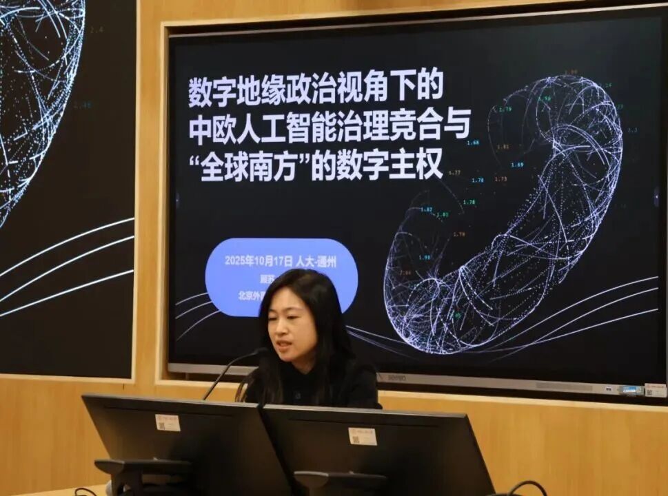 2025年10月18日上午9:00,由中国人民大学和北京市通州区人民政府主办的、教育部欧洲联合研究院和中国人民大学区域国别研究院承办的2025通州·全球发展论坛之“中欧青年对话论坛”顺利召开,来自中国、英国、西班牙等10国青年代表围绕“新技术与社会平等”、“新能源与中欧共生发展”两大主题展开深入研讨。会议由教育部欧洲联合研究院徐正源秘书长与马嘉鸿副秘书长共同主持,与会者在技术治理与能源转型等关键议题上达成重要共识。